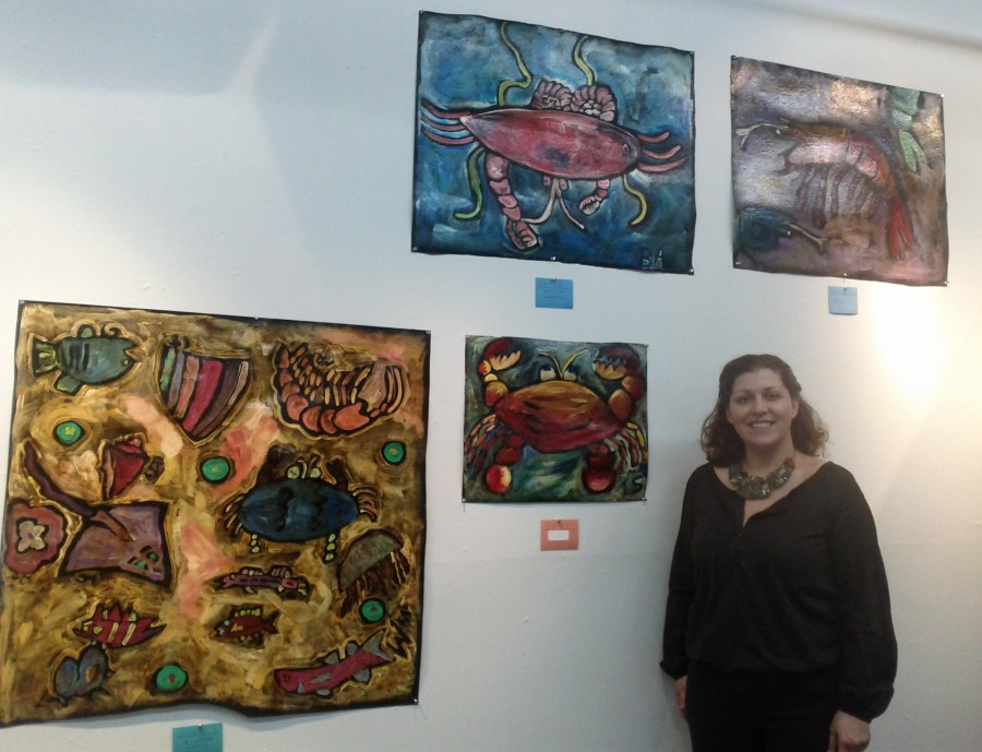 What’s really neat about this store is that there is an art wall with marine murals done by young artists from the Southwest Alabama Regional School for the Deaf and Blind in Mobile. They paintings are made on black tar paper. Words aren’t necessary as paintbrushes illustrate the fanciful aquatic images swimming in their imaginations.