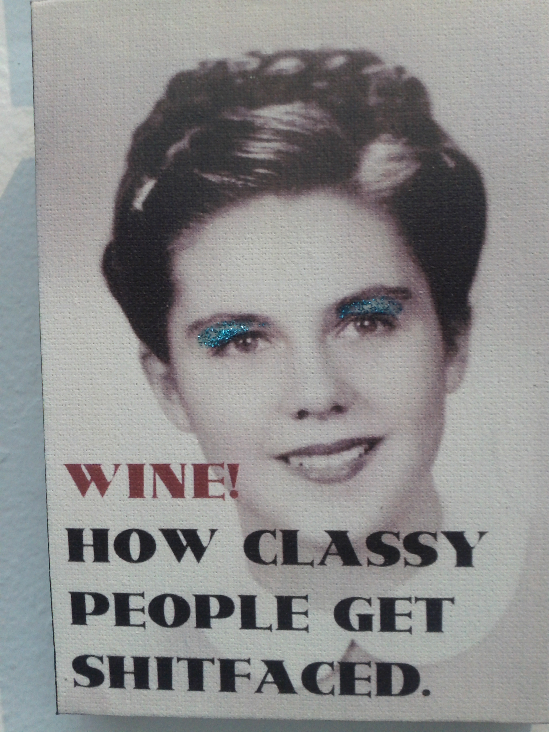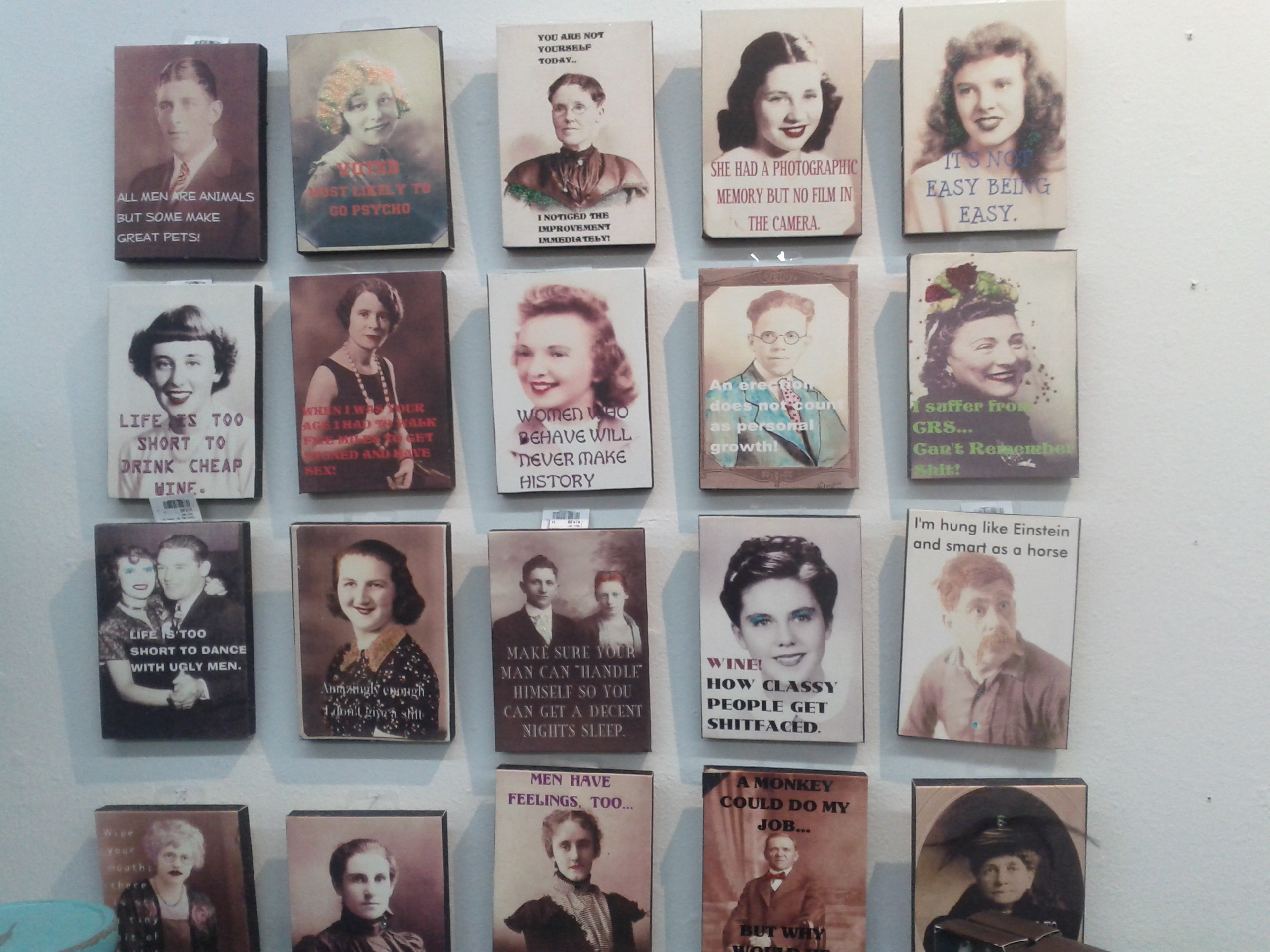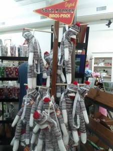Doesn’t everyone need a sock monkey backpack?A wall full of funny tile quotes – mostly true.