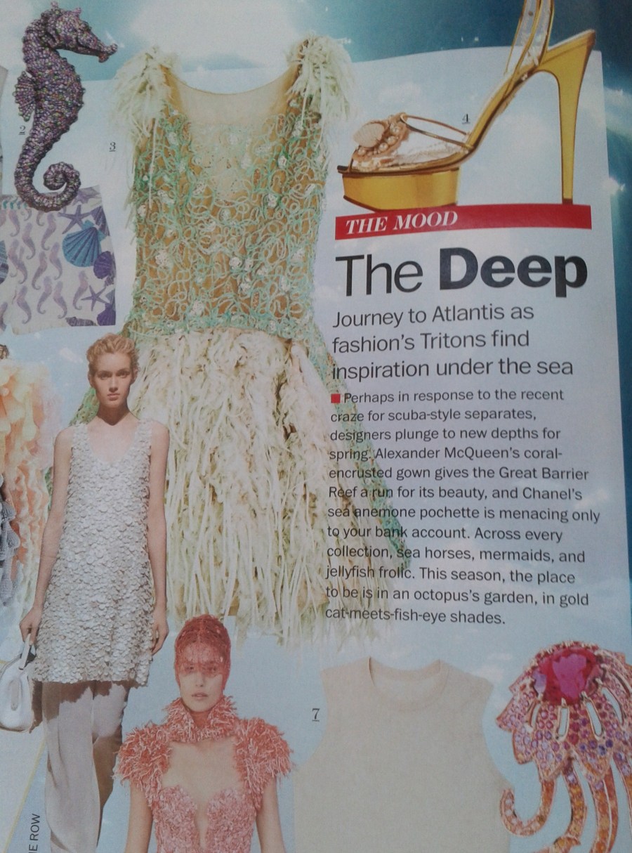 Summer is around the corner………or so it seems if you consider all the references to “the sea” in all the latest fashion magazines and on the runway. Don’t we all gravitate towards things from the SEA? We must make the most of summer months by wearing little summer dresses, seashell necklaces & carrying wicker handbags. Oh; and flip flops.