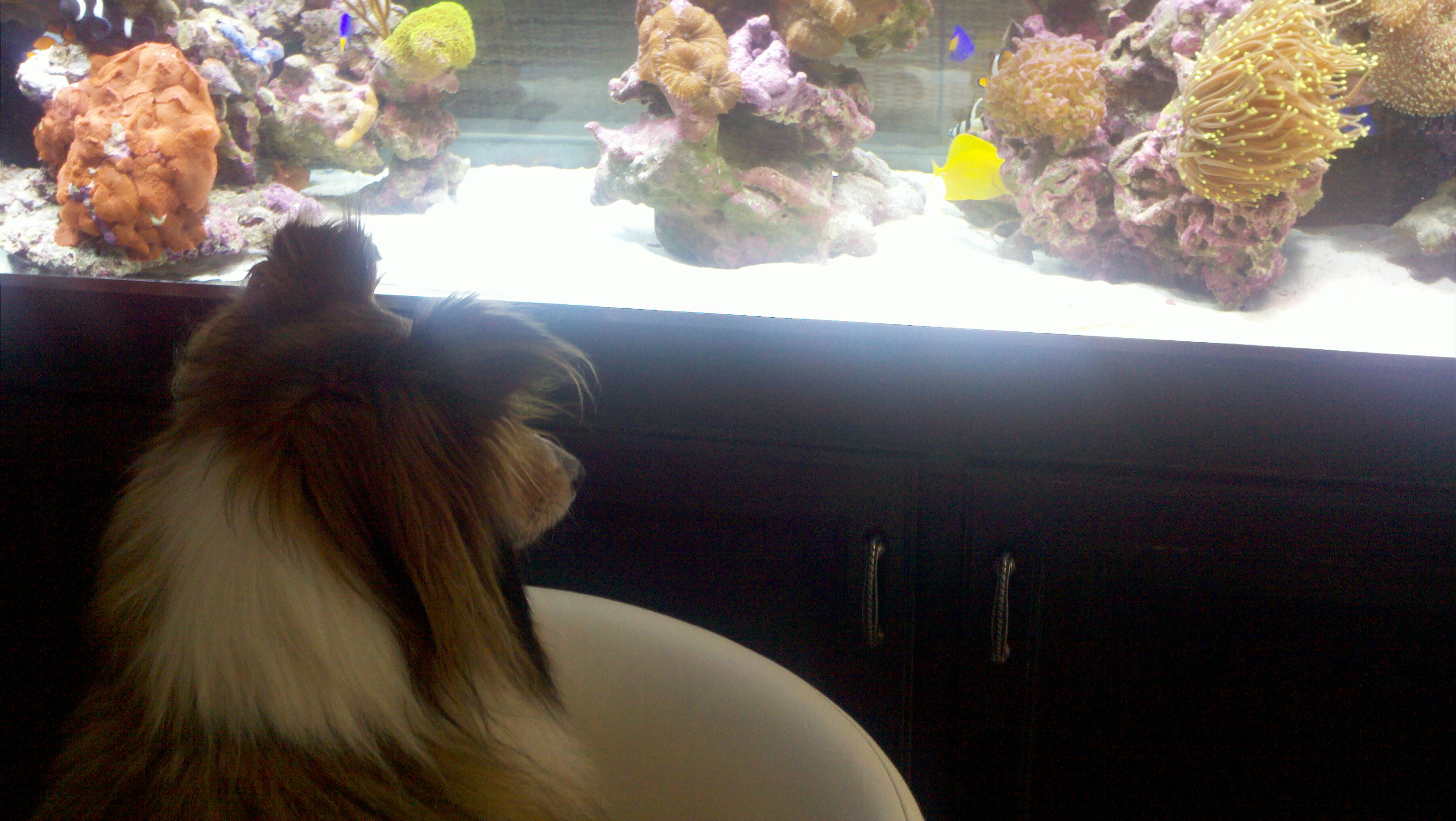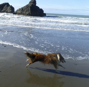 His eyes always follow one little fish in the tank.On occasion he likes to visit wineries. This one in Napa.Gets tired after a long day of playing footballBut most of all never misses an opportunity to run along the beach. Here in Oregon.