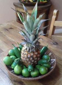 Pour 1 ½ cups of fresh lime juice (from 10 limes) and ½ cup fresh orange juice (from 1 orange) into an 8-inch square baking dish. Arrange 1 ¼ pounds of firm white fish such as halibut, scallops, rock fish or red snapper fillet, (I used Halibut) skin removed, and cut into ¼ inch slices in a single layer in dish. Fish should be completely covered in juice. Cover with plastic wrap and refrigerate until fish is opaque throughout, about four hours. Drain fish well, discard marinade.
