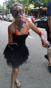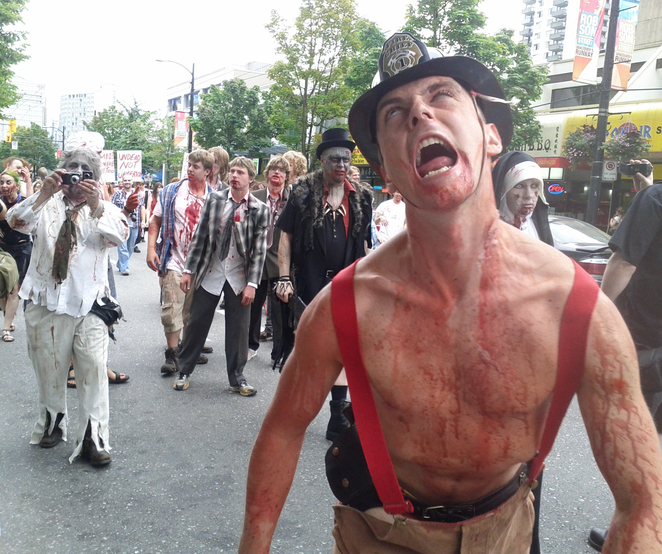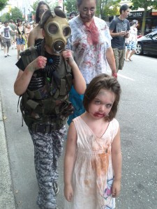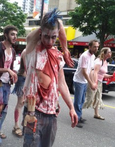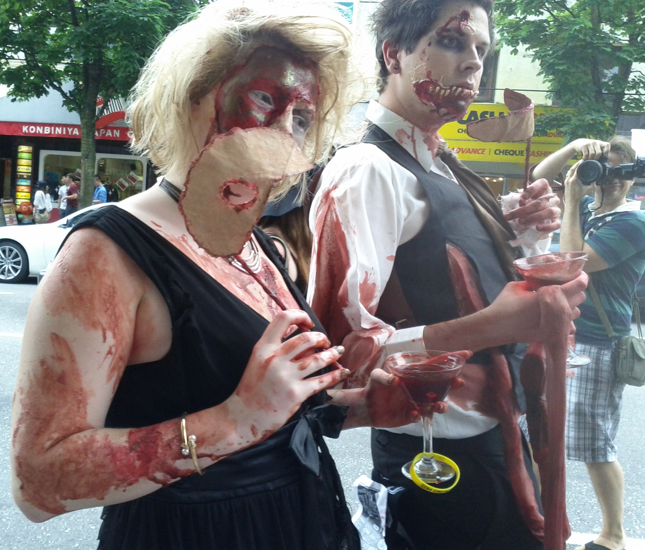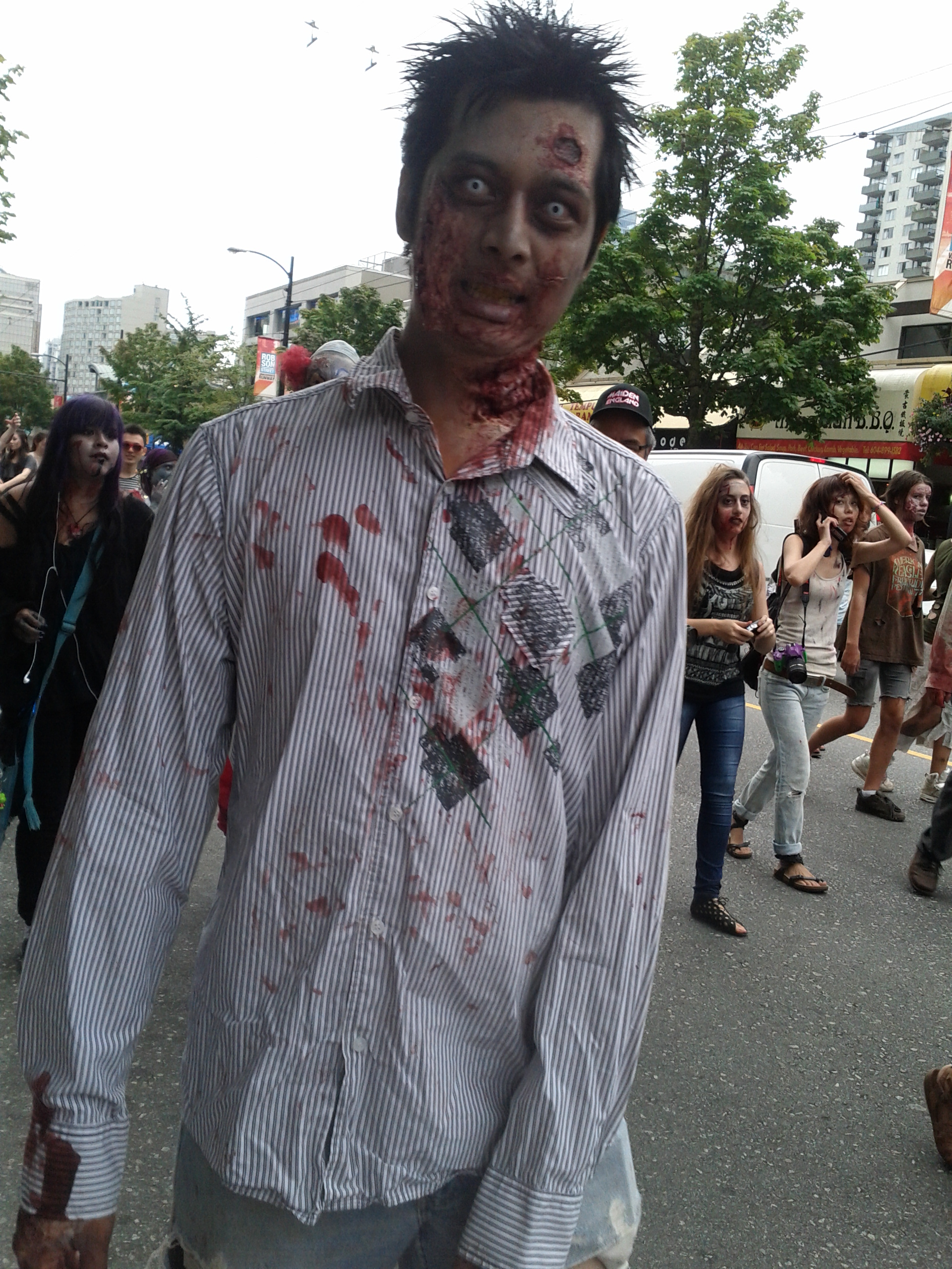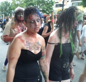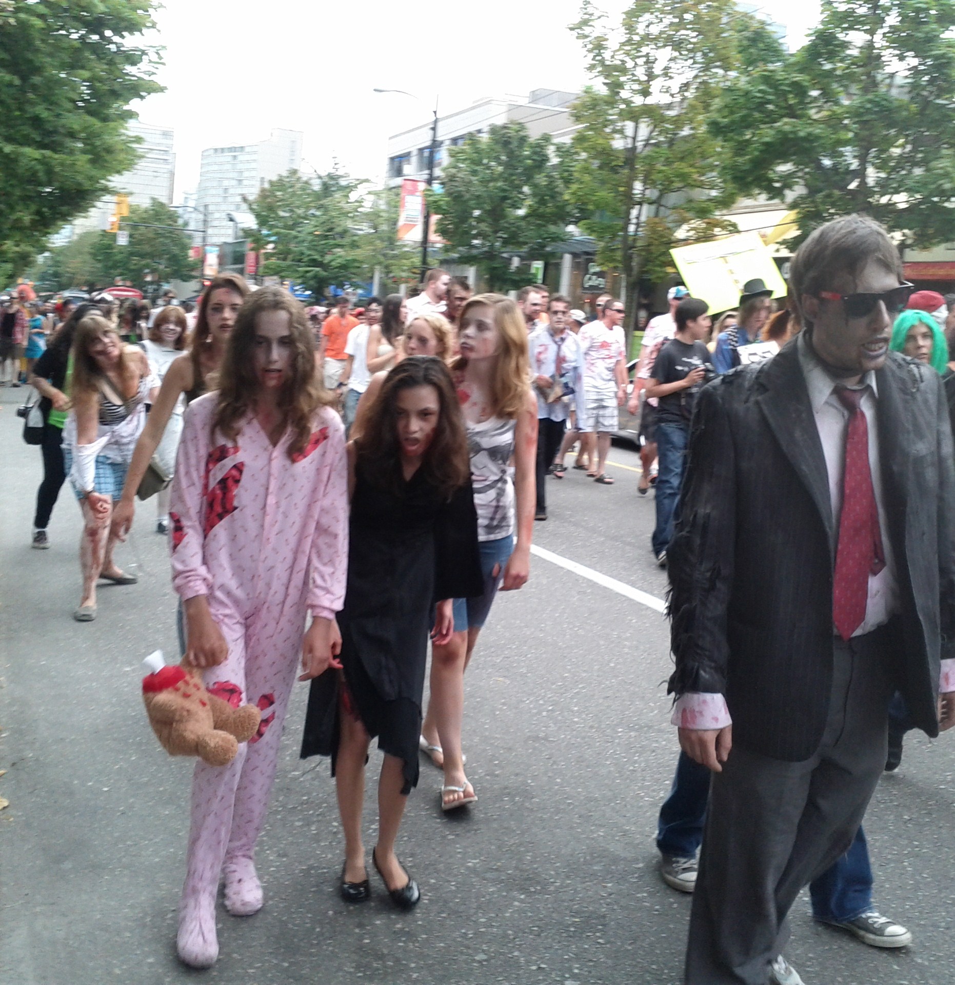 A zombie walk by definition is an organized public gathering of people who dress up in zombie (monster like) costumes. And it’snot even Halloween.