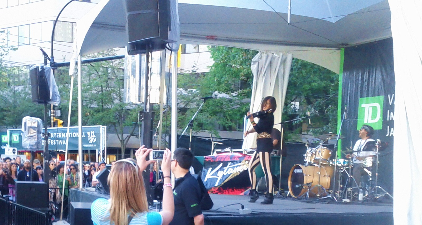 On Saturday – I loved the sound stages that were set up at Robson Square for the first time. My friend and I sat on the steps of the Vancouver Art Gallery while listening to wonderful Jennifer Scott’s Brasileira band and then following that, a most amazing fiddle player by the name of Kytami. Then we wandered over to another stage set up behind the gallery for a little bit of big band jazz. Good times.