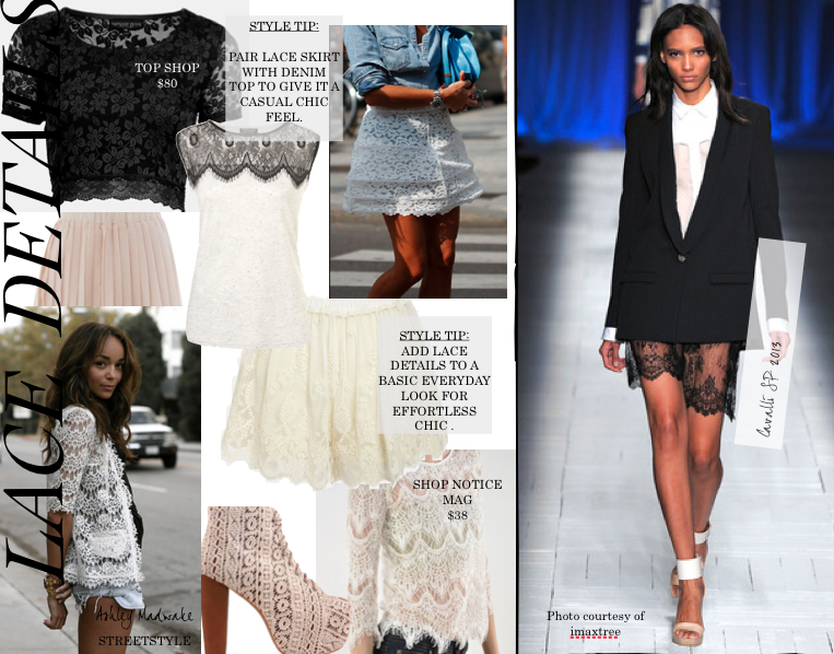 Used as both accent and the main attraction, lace was spotted all over the Spring/Summer 2013 runways.