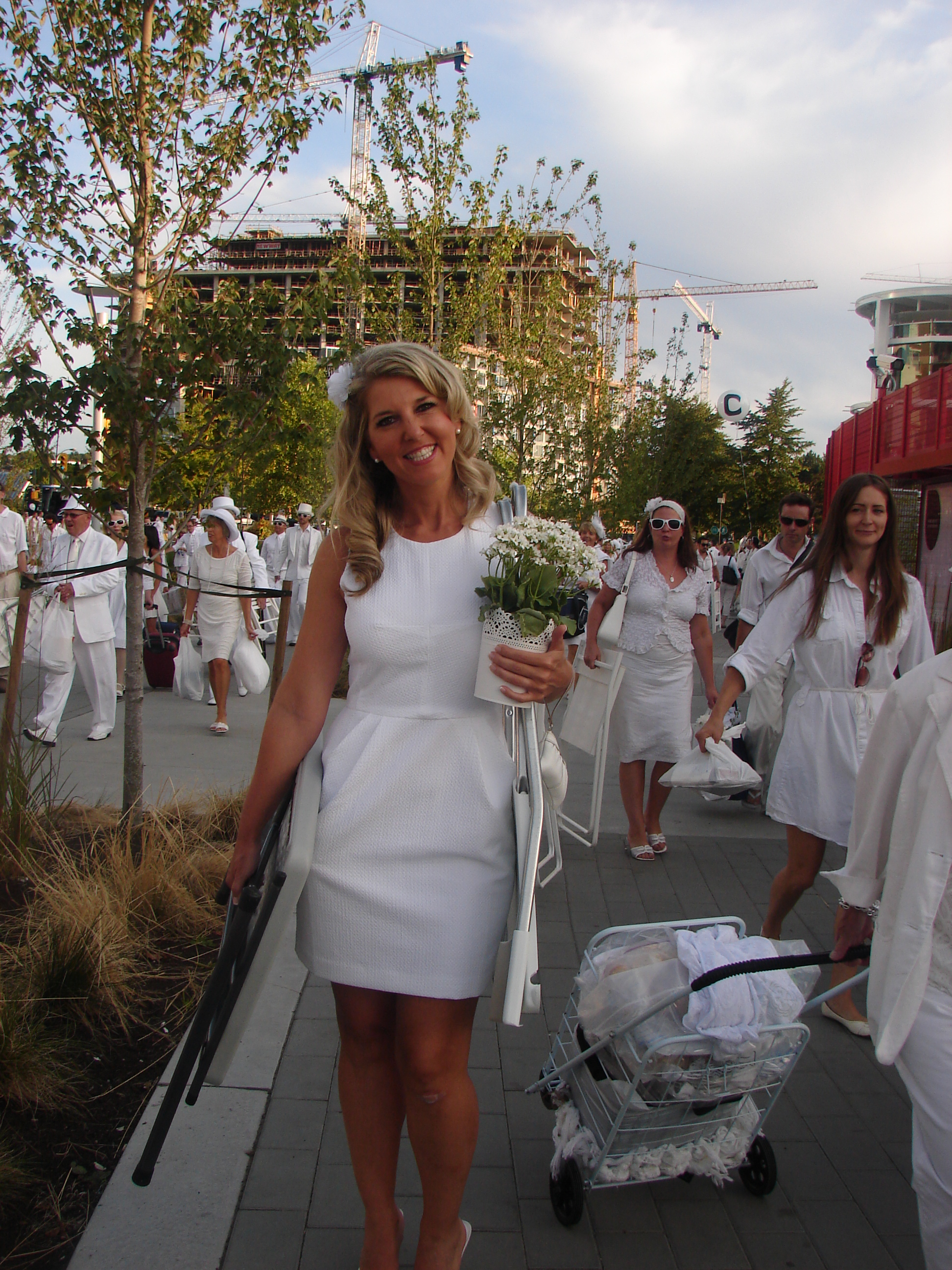 I attended Vancouver’s second “Diner en Blanc” courtesy of my sister Lisa. Have you heard of it? This event first started 25 years ago in Paris and has now become a global phenomenon. A big part of the event is always its secretlocation up until a few hours before having to make your way there. This year many people guessed the Science World location ahead of time.