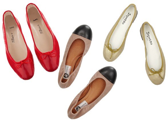 from left: porselli ballet flats, $190, apc.fr; leather ballet flats, $560, lanvin, net-a-porter.com; the cendrillon textured-leather ballet flats, $285, repetto, net-a-porter.com
