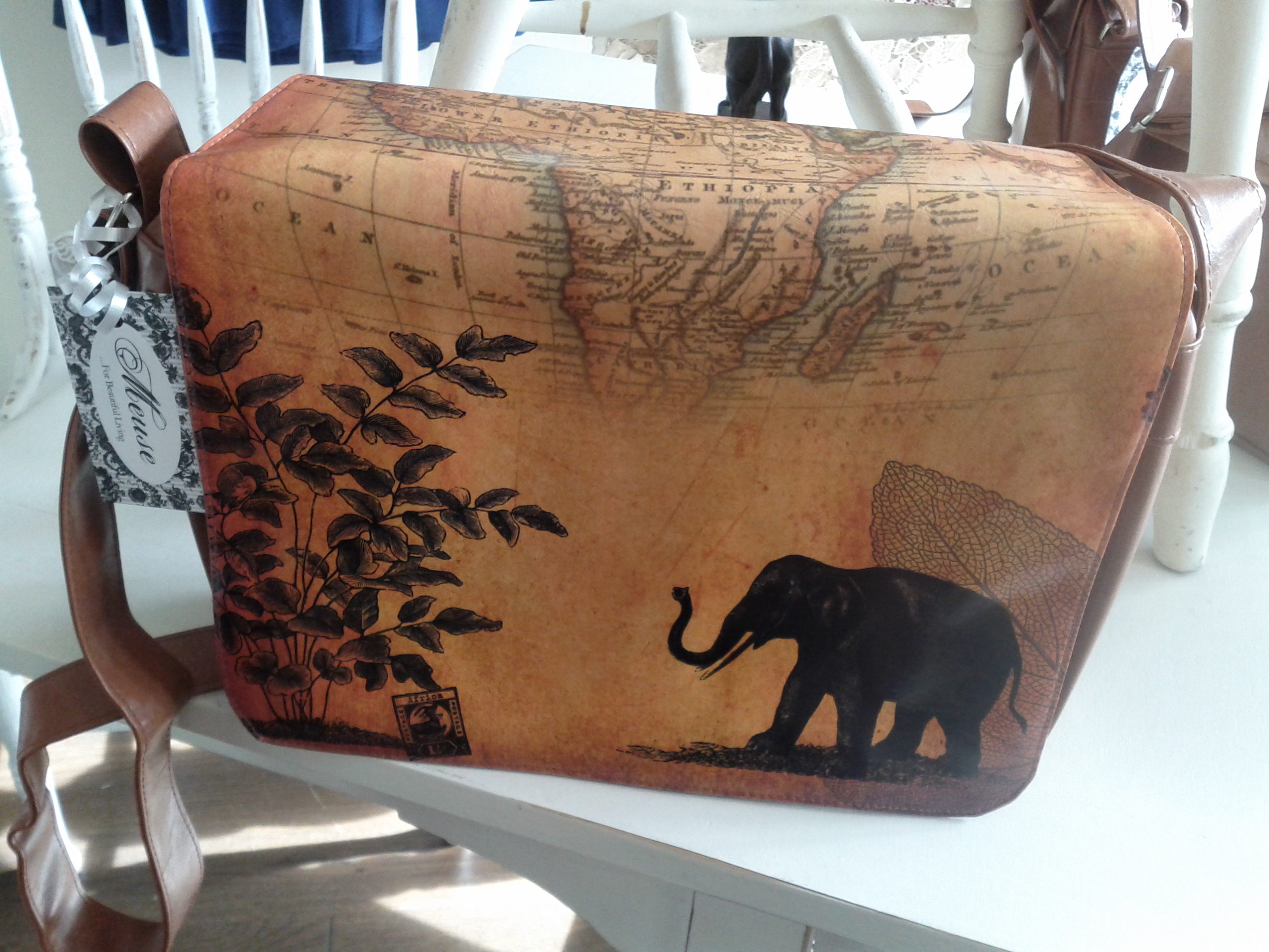 This bag also features a giraffe at the back with an antique map of Africa.