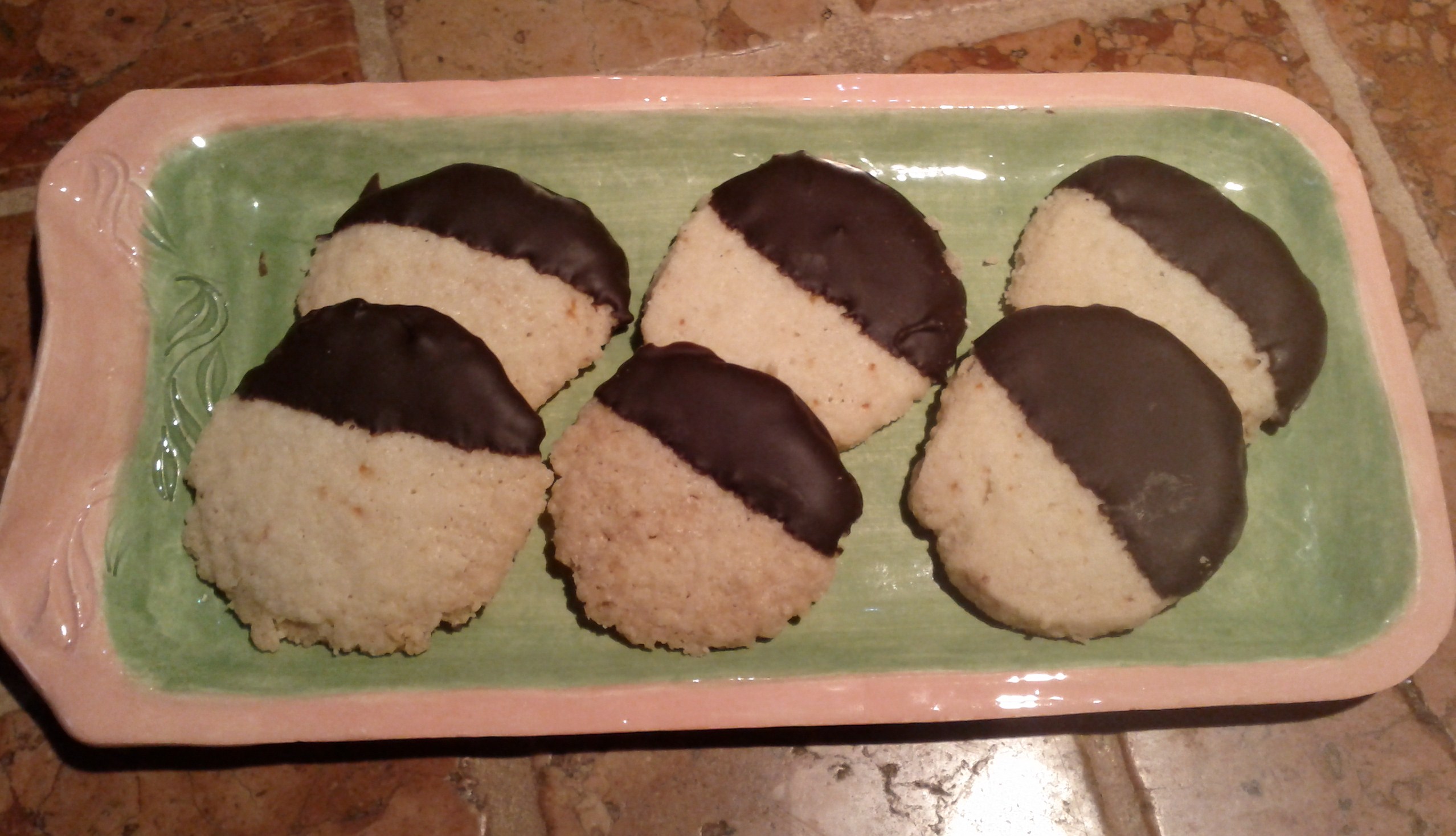 A friend gave me this recipe (originally from Canadian Living) which is perked up with orange rind and partially dipped in chocolate. What can be better than orange & chocolate?