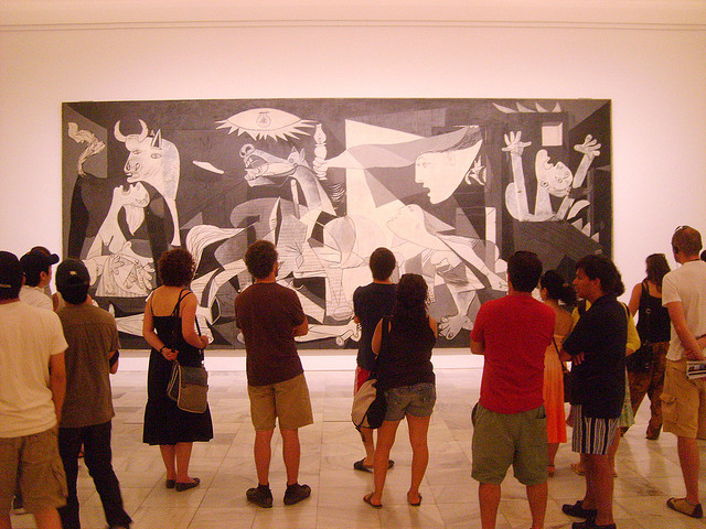 5. Guernica is one of Pablo Picasso most famous paintings, showing the tragedies of war and the suffering it inflicts upon individuals, particularly innocent civilians. Picasso’s purpose in painting it was to bring the world’s attention to the bombing of the Basque town of Guernica by German bombers, who were supporting the Nationalist forces of General Franco during the Spanish Civil War. Picasso completed the painting by mid-June 1937. The painting can be seen in the Museo Reina Sofía in Madrid.