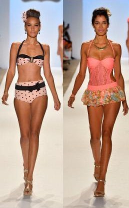 These styles that cover more flesh have been seen on everyone from Megan Fox and Taylor Swift to Lindsay Lohan, Meg Ryan, and Marisa Tomei (if you need this kind of assurance). Breath a sign of relief that you don’t have to suck in your gut now. The hottest looks right now come right out of the old Hollywood glamour of the ‘40s and ’50s, when pin-ups really took off. Some history: