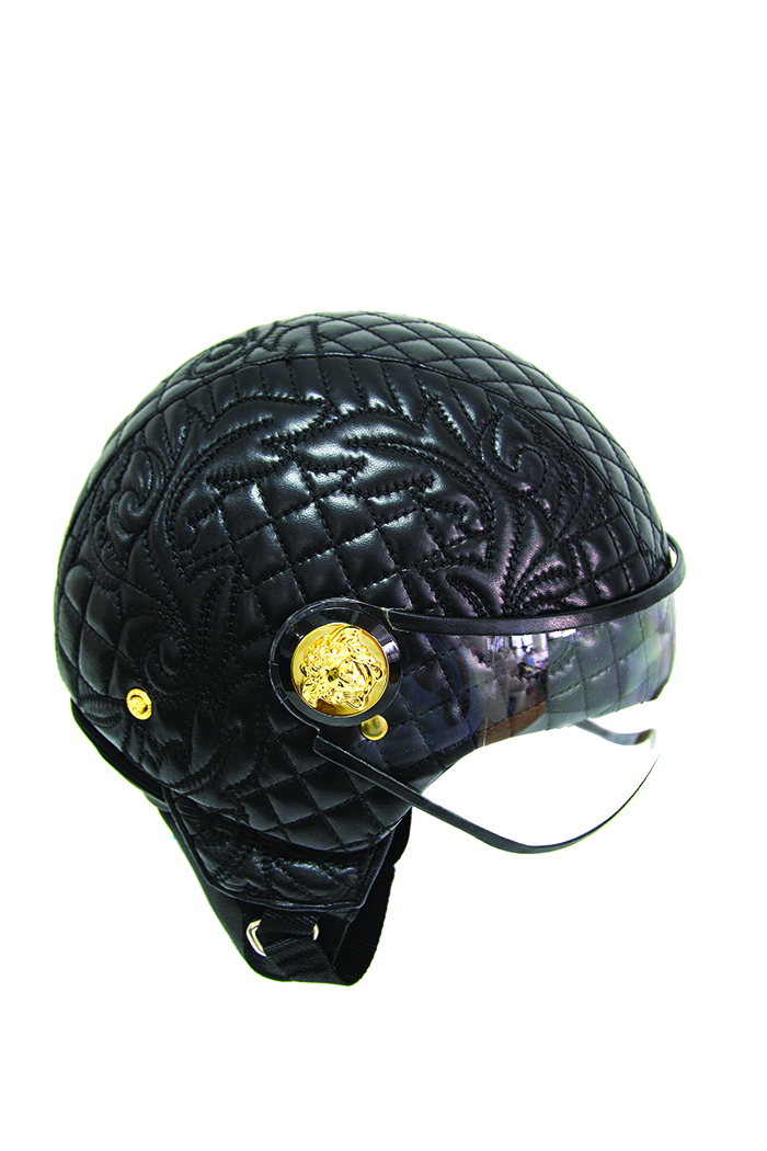 Unfortunately I’m only kidding….but I can imagine wearing this Quilted Versace Helmut (price upon request). versace.com on my little scooter.