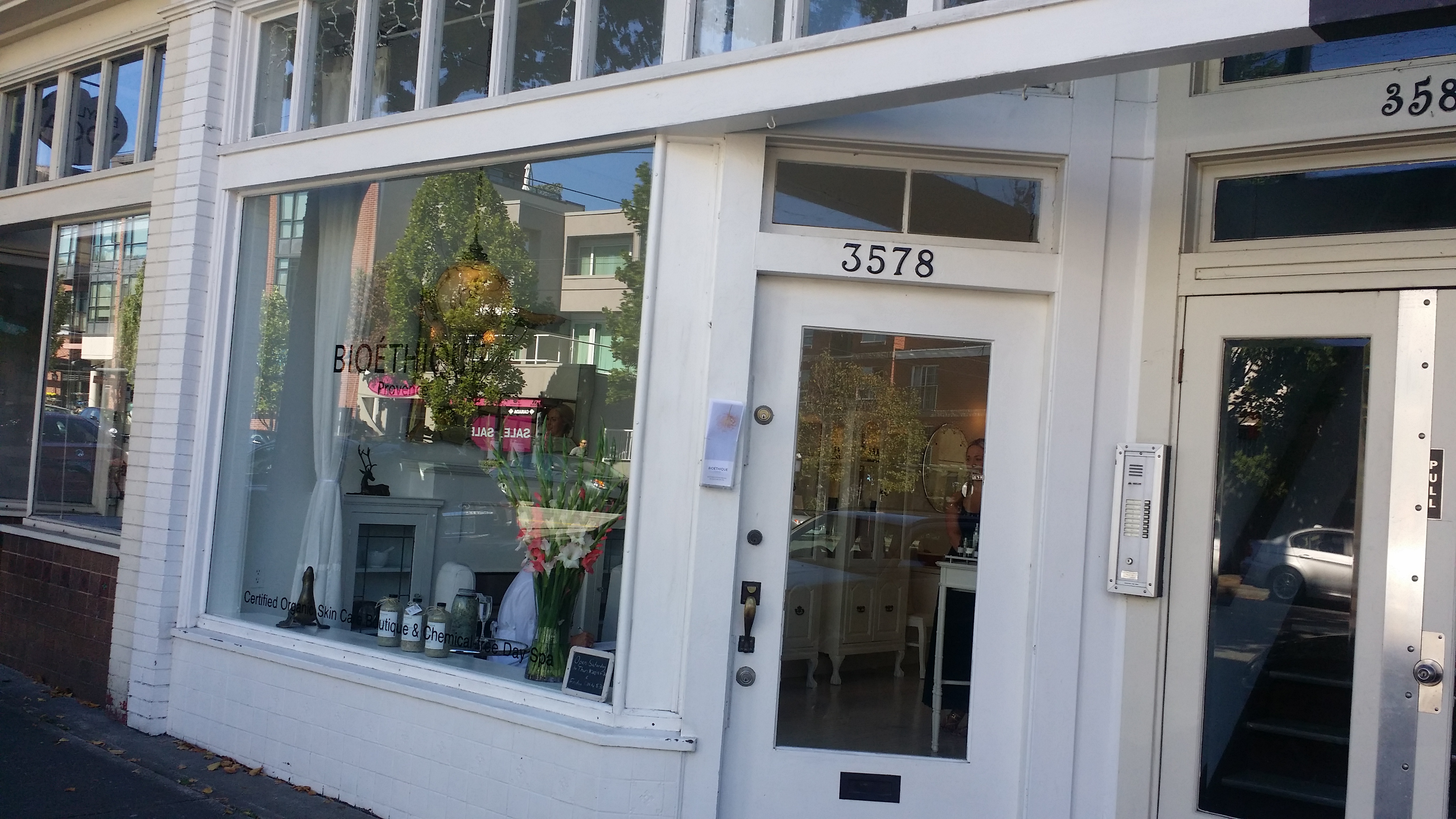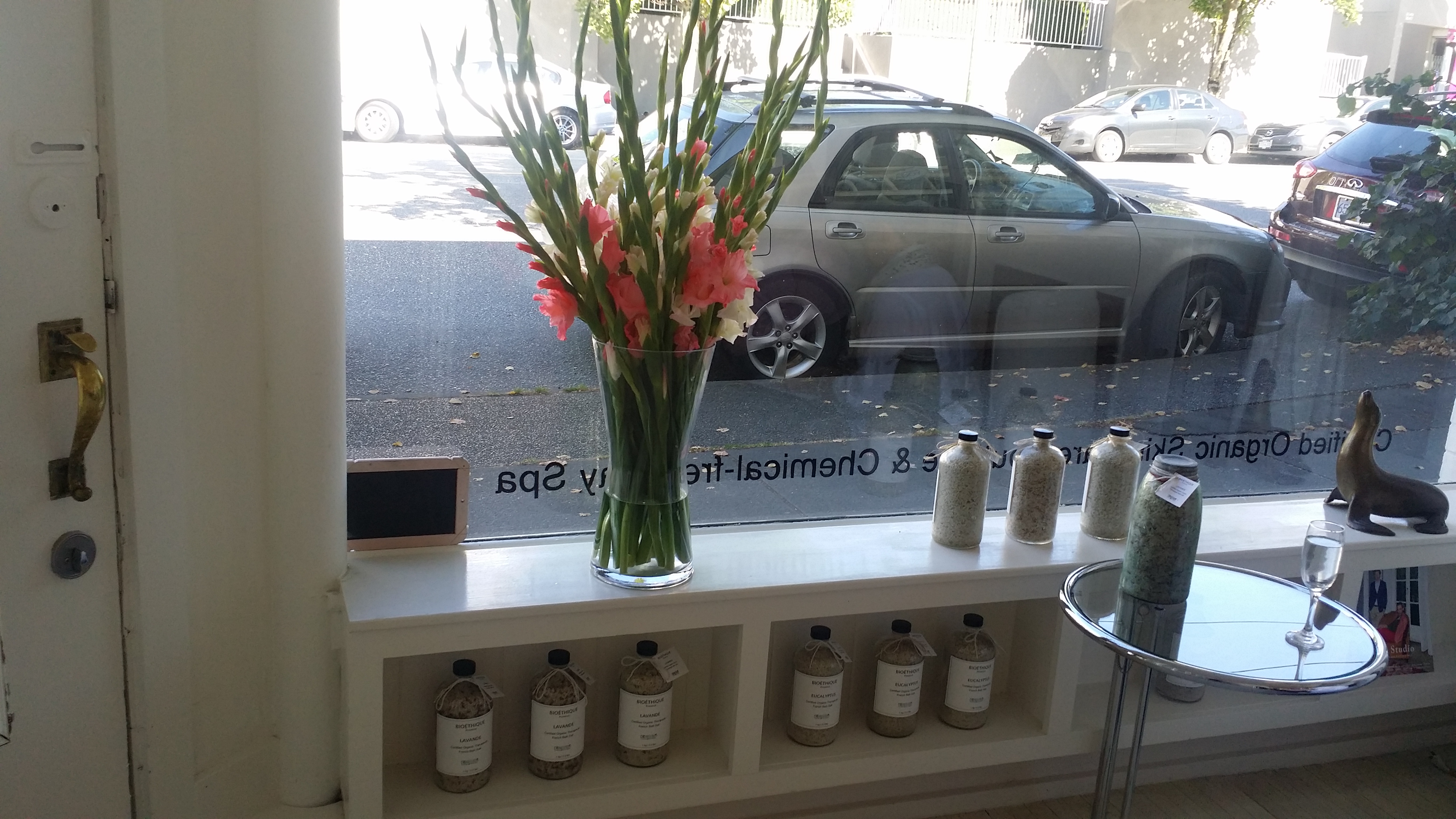 And white without being stark. It looks very FRENCH (which in itself is a bonus – as in French woman really look after their skin), and it has old world charm. oh, did I forget to say what it is? A certified Organic Boutique and Day Spa right here in Vancouver. A genuine oasis for health and relaxation.