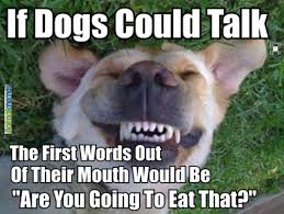 Yesterday he growled at a dog that was minding his own business across the street – for absolutely no reason that made sense to me.  The dog didn’t provoke him or anything like that so I was trying to imagine what he was saying.  Then I thought…