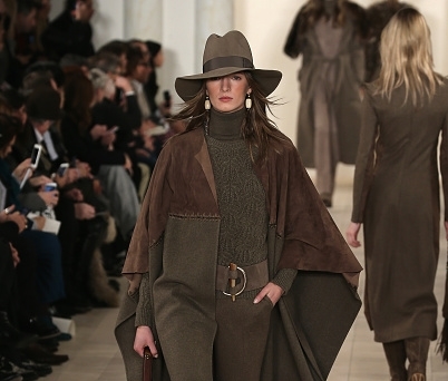 A model walks the runway at the Ralph Lauren fashion show during Mercedes-Benz Fashion Week Fall 2015 at Skylight Clarkson SQ. on February 19, 2015 in New York City.