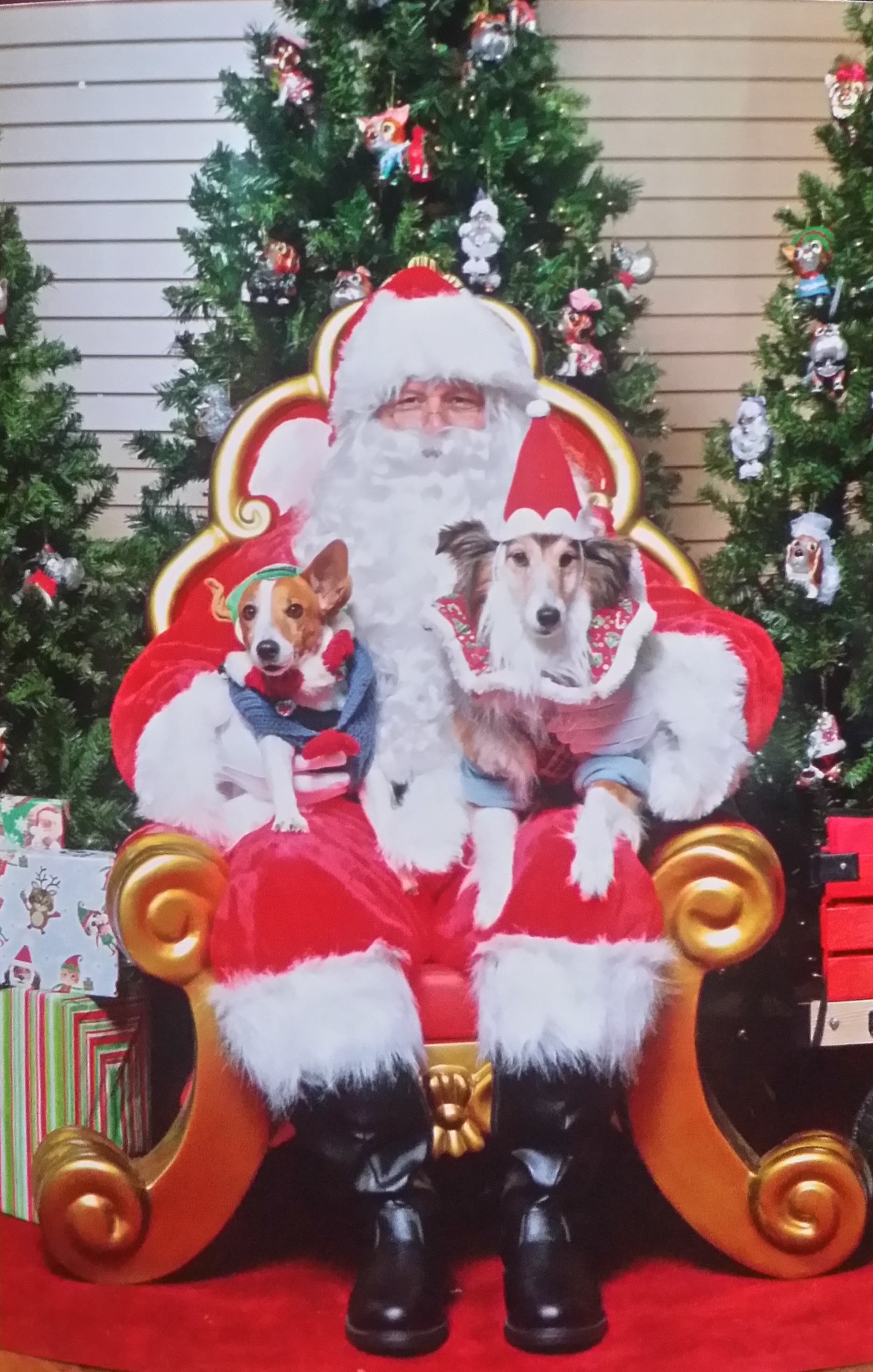 Jack & Jia Jia get ready for their photo with Santa. Jack wants to apply to be an Elf at the North Pole so he can be closer to all the toys. Jia Jia pretends to be Santa by listening to Jack’s wish list.Trigger does not look so pleased to be a reindeer. He wanted to be the Grinch.