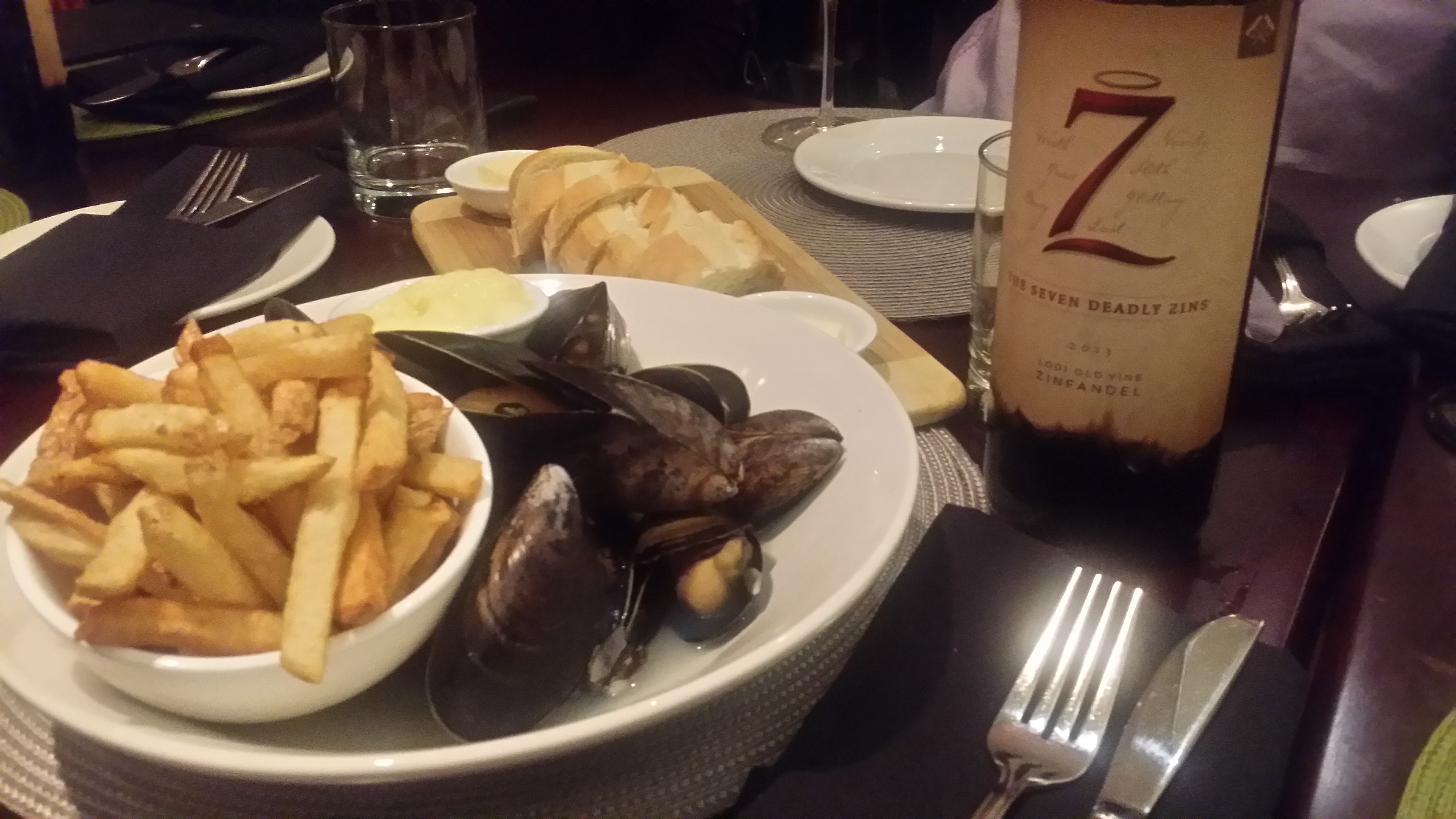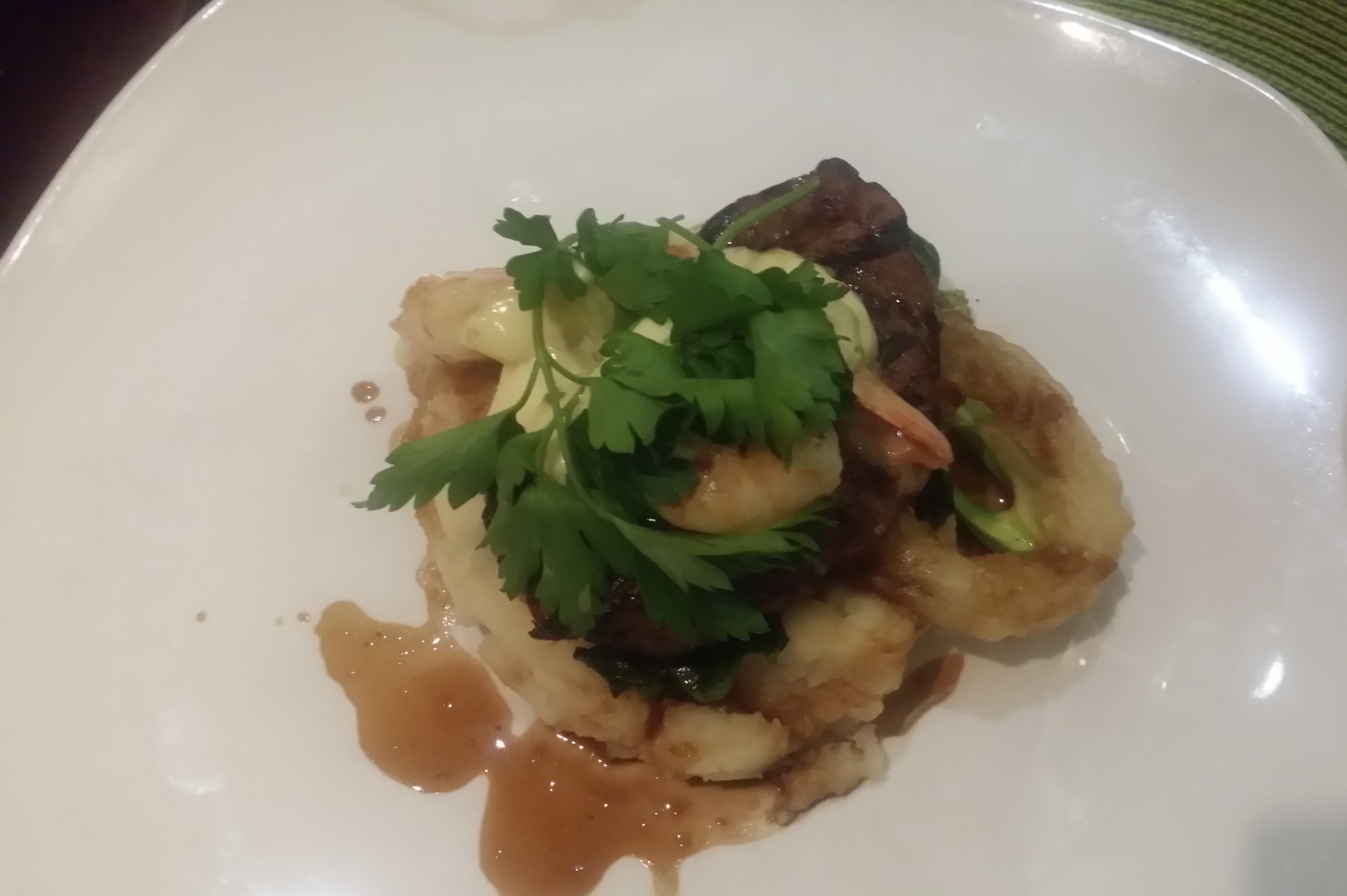 mussels in white wine, capers & flat-leaf parsley and fries with truffle butter – for startersAhi Tuna TowerMac ‘n Cheese appetizerFilet Oscar, certified AAA beef tenderloin, prawns, house béarnaise, pomme puréeLemon Curd Cheesecake – soooo good!