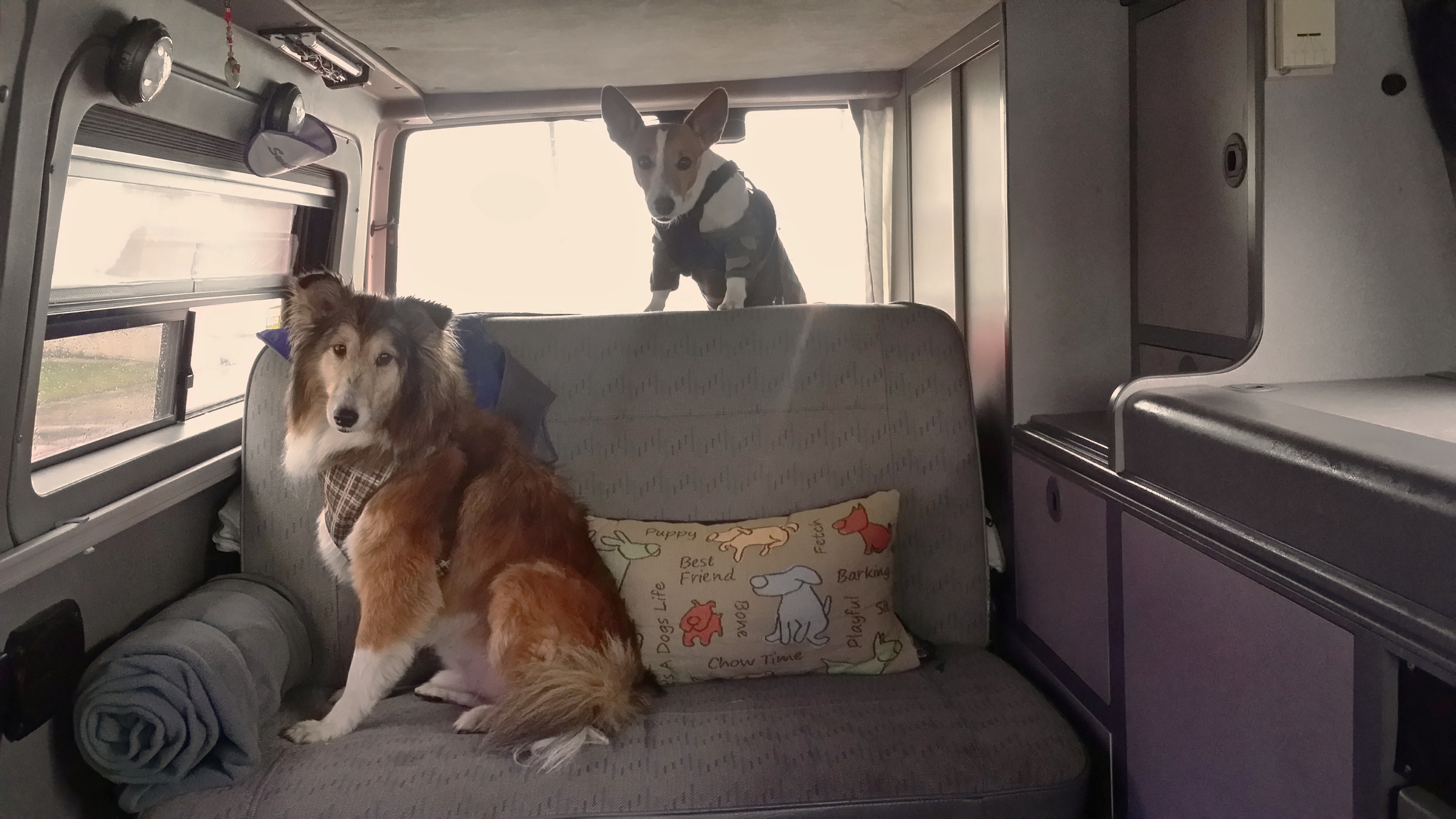 These 2 monkeys prefer traveling in a VW Eurovan camper