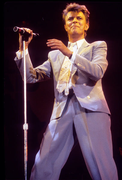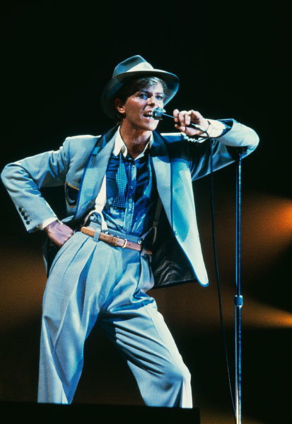 A swashbuckler, with scarf and white shirt. Photo: Jorgen Angel/RedfernsThings were looking peachy with “Let’s Dance” Photo: Paul Natkin/WireImageGuess I love a well-dressed Bowie best. Photo: Richard E. Aaron/RedfernsBowie’s most normal look of the 70’s. Photo: Steve Morley/RedfernsHandsomely dressed down. Photo: Frank Micelotta/ImageDirect