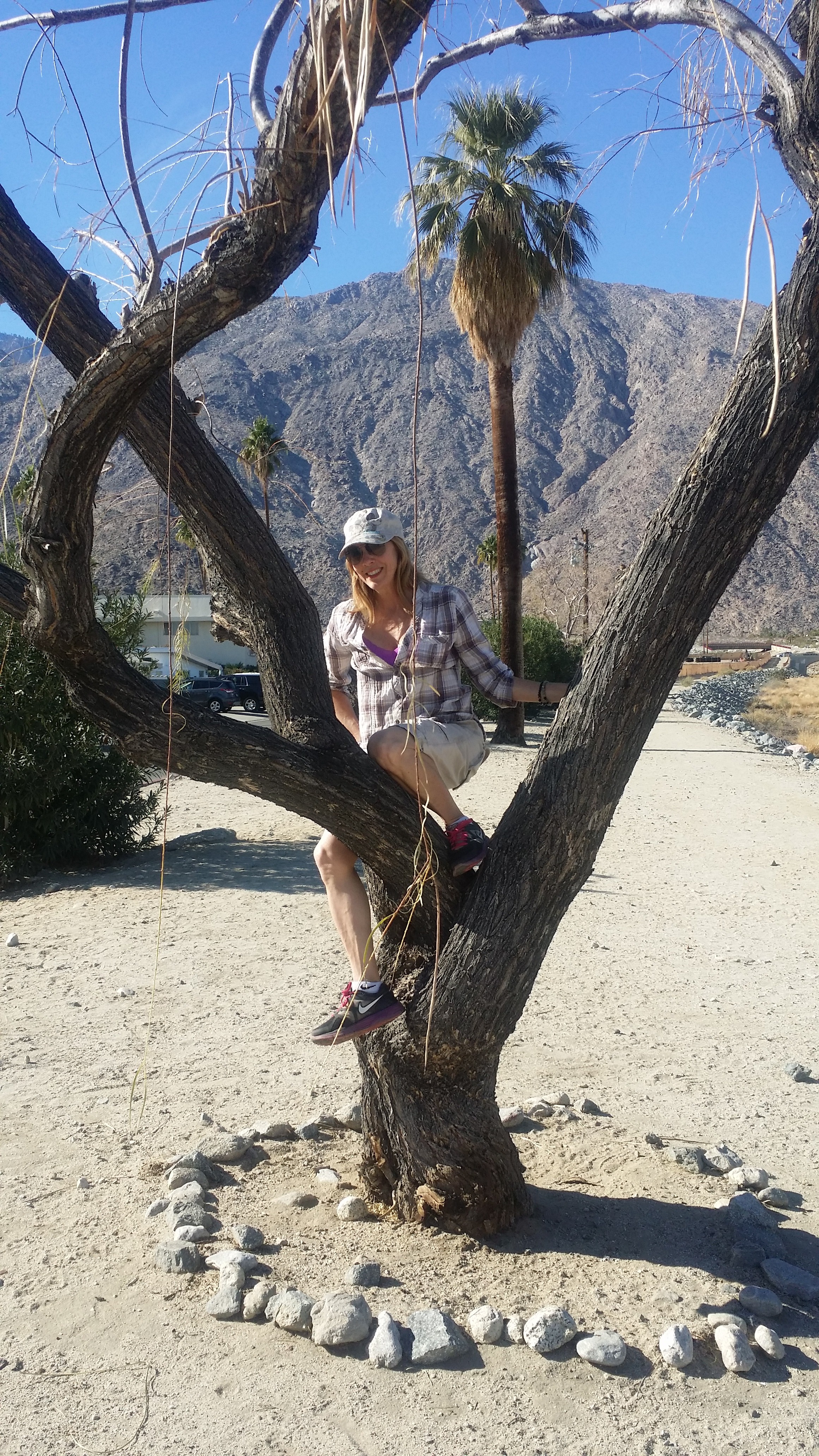 New Year’s Eve – I started out like this – complete with silver sparkle shoes.At the stroke of midnight my carriage disappeared and I lost one shoe.I ended up like this…waking up with 2 boytoys.So I decided to climb a tree in honour of the Year of the Monkey.