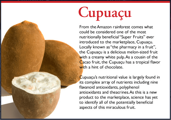 Cupuacu’s benefits are synergistic. For example, the energy-boosting effect mentioned is a result of the fruit’s heightening of the immune system, lowering of blood pressure and the overall body-boosting effects of the fast-acting nutrients and vitamins from the fruit. Unlike most energy drinks or caffeine, though, there is no tired feeling afterwards.