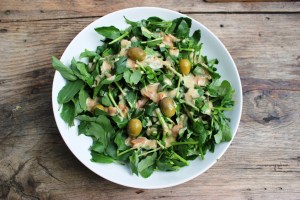 Two things I picked up recently at the supermarket: Sunchokes & Watercress.I haven’t had watercress in ages mostly because I rarely find it other than farmers markets. I almost forgot the nice peppery taste and how great it goes in salads either as the main leafy green or added to a mix of others.