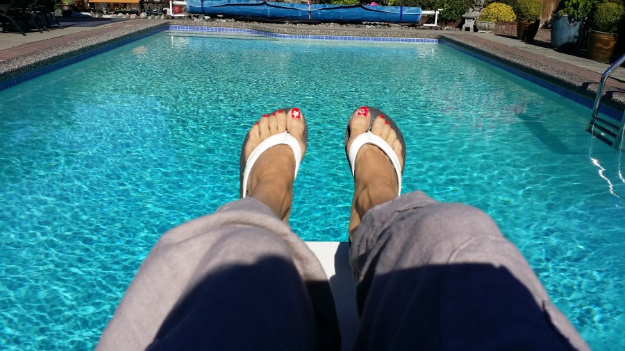 Not exactly diving into the first day but still enjoying the pool and wondering where have all the ducks gone?