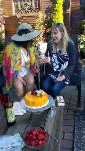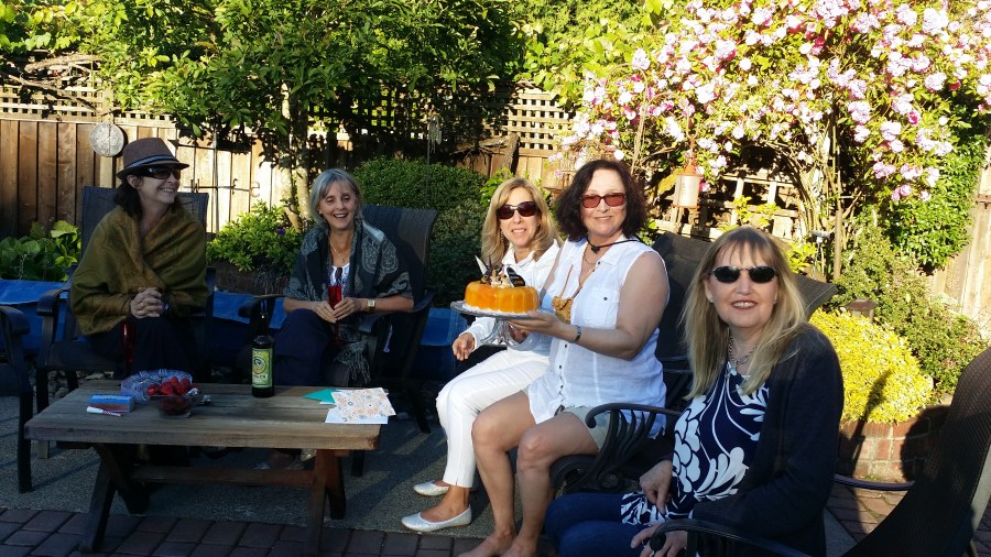 A girly get together for another birthday celebration. L-R Sylvain, Louise #2, Rosa, Louise #1 (birthday girl), hostess Colleen (in her stunning  garden).