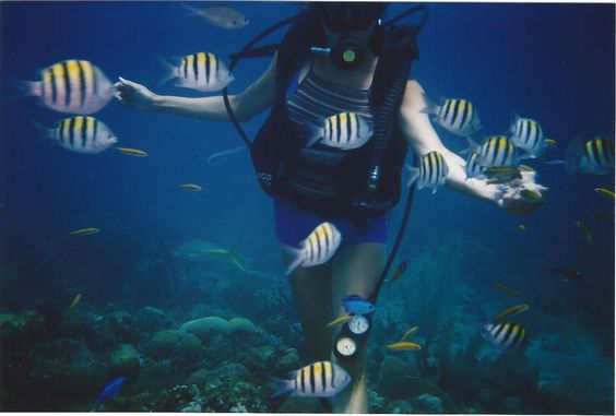 This is an older photo from my scuba days in Jamaica.  I wore stripes so that the angel fish would think I was one of them.  But they knew I was no Angel.  Clownfish maybe?