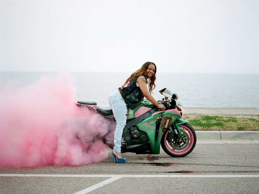 With their matching outfits, sky-high stilettos, and dazzling motorbikes that emit puffs of pink smoke, Caramel Curves is a photographer’s dream.