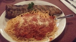 The Colander Special remains their most popular meal. It’s what I ordered although their menu has expanded over the years to include things like baked ziti, ribs, lasagna, etc. My intimate party ordered ribs with chicken along with spaghetti & meatballs and the meal came with simple salad and rolls.