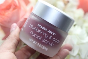 I’m usually a bit skeptical of “too good to be true” deals but recently on a shopping trip to Washington State I stopped in at Trader Joe’s and found this little beauty. T.J’s Blueberry & Acai facial scrub is surprisingly effective, smells great and the price is right.