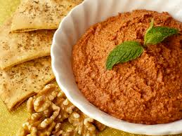 It sounds exotic and it tastes exotic but basically it translates to: red pepper and walnut spread. This good-for-you recipe is also easy to make. Which in my estimation is always a plus.