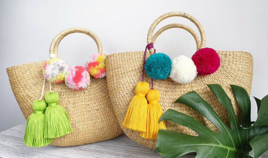 d. kingBasket bags embellished with pom poms and tassels by The Happy Beach. (Photography: The Happy Beach via Instagram)