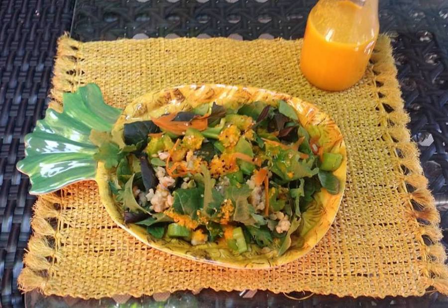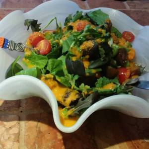 Serve over greens and add toasted sesame seeds (optional) to top it off and some shaved carrot. TIP: you can have it as a main course if you toss in some cooked salmon or chicken.