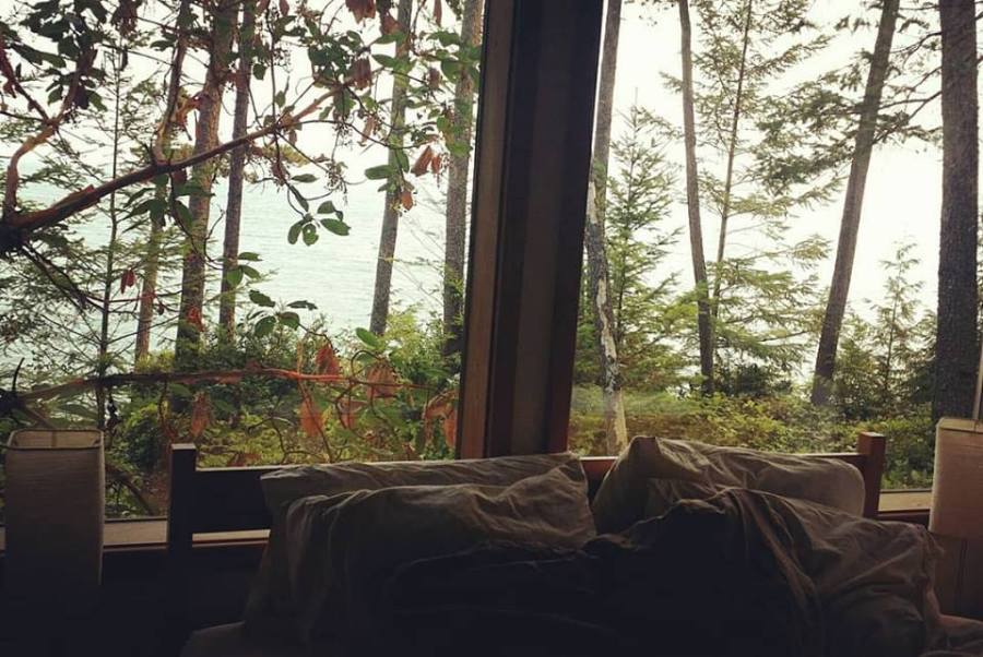 I had to take a photo of my bedroom. A little too hazy because of the wildfires to see the water, but the ocean is right outside the window.