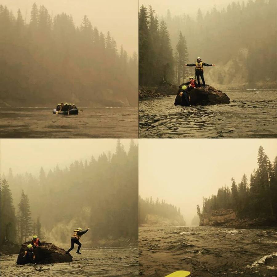 Hours before attending a wedding reception last Saturday, this is what we did. We had an absolute blast whitewater rafting in warm, clear & clean water around the pristine wilderness of Wells Gray Provincial Park – in Clearwater, British Columbia. There was haze in the air though due to the countless wildfires still raging in surrounding areas. There was a moody grayness up above but down below we enjoyed every minute not knowing exactly what to expect around the corner. There were a few good splashes along the way and those who wanted to swim could, in certain safe areas. Two weeks from now the wild salmon will come to spawn. That will be a sight to see.