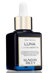 This LUNA face oil was included in the Winter Box of Style. It’s called sleeping night oil by Sunday Riley. It’s not an oil that makes you sleep better (too bad about that) – it’s an overnight face oil. It’s also blue.