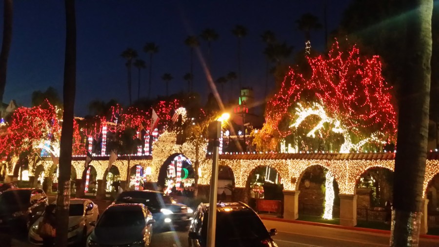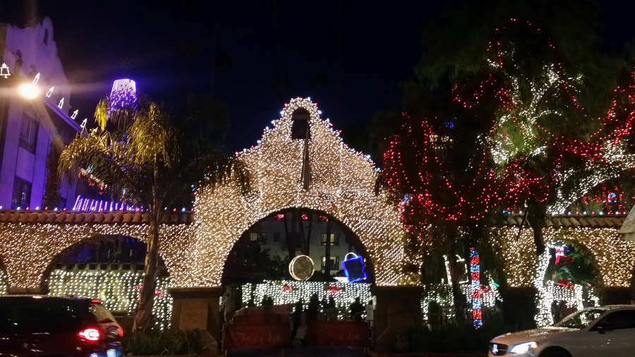 I had the unexpected pleasure of visiting the unique and magnificent Mission Inn Hotel and Spa during this holiday season along with a splendid Festival of Lights that light up the hotel and surrounding areas. Located in Riverside, California (about a 90-minute drive from Palm Springs with little traffic) and with only two more days until Christmas, let’s just say that this helped get me into the spirit. These photos barely do it justice.