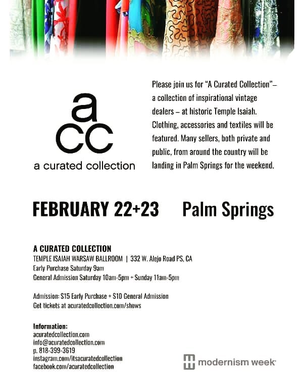 What a great way to spend a Sunday afternoon. Watching a runway show of the finest vintage apparel with friends. And with a few friends in the show too! Hosted at Temple Isaiah, a midcentury building during Modernism Week here in Palm Springs with renowned Fashion Icon Patrick McDonald as our M/C. Music was from Studio 54 days. Loved it!