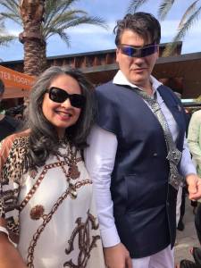 With Jenni Doyle at Palm Canyon Roadhouse in Palm Springs. Then on to Sammy G’s from there for a delicious dinner. Moez, her lovely and handsome husband, accompanied us.