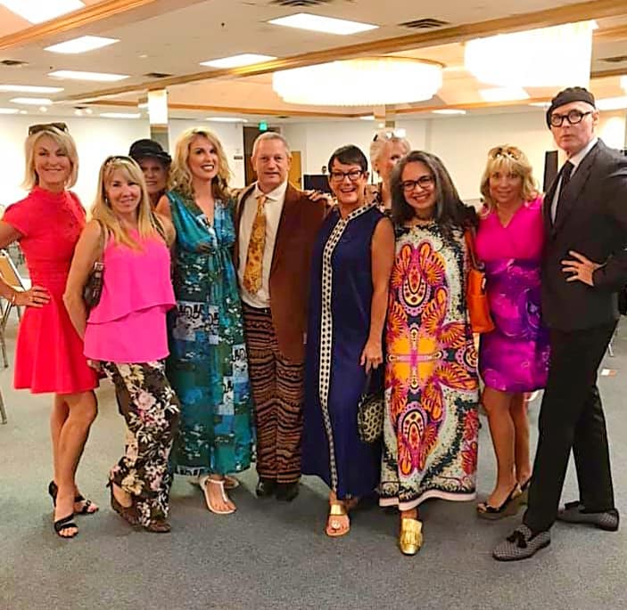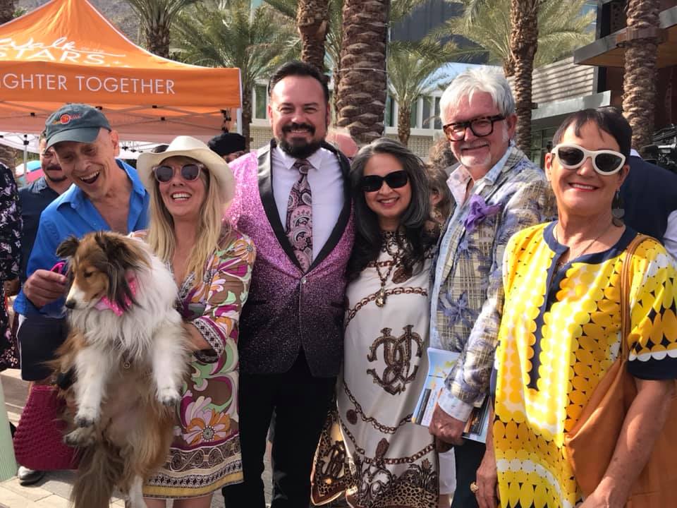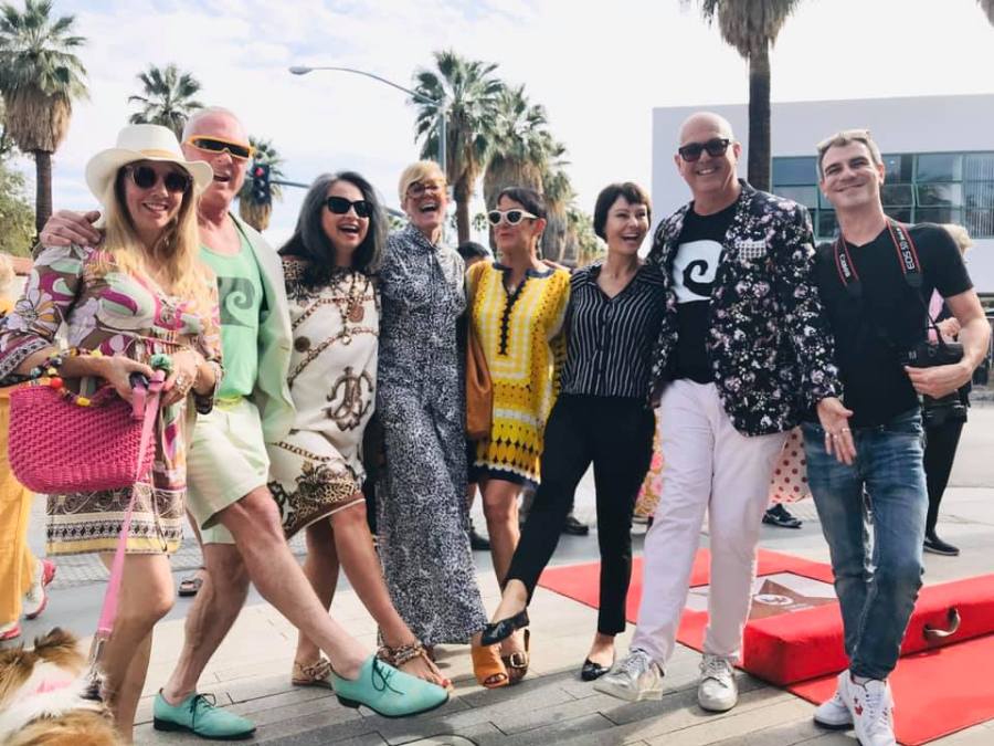 With Tammy, Kiki, Mitchell (of Mitchells Palm Springs), Claudia Ried (of PSPOV – Palm Springs Point of View), Candy (wearing California Caftans), Kathy and M/C Patrick McDonald.