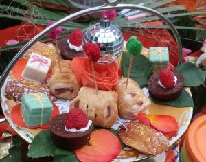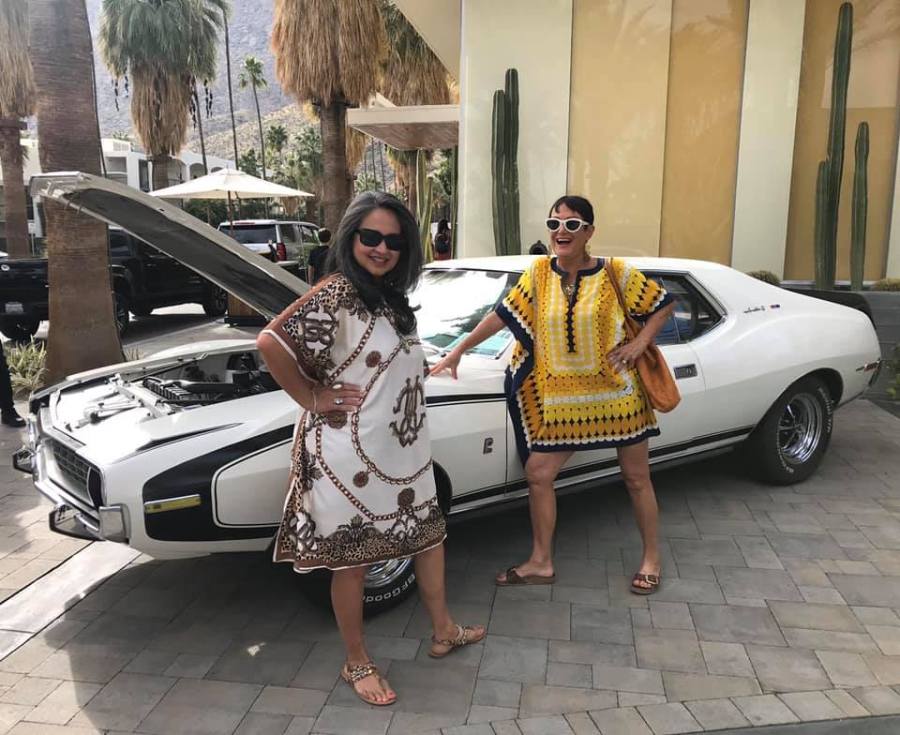 On Sunday I had the pleasure of celebrating her birthday alongside her husband Jerry, their friends and a few neighbors in their fabulous Tiki inspired home in the Little Tuscany neighborhood of Palm Springs. The dress code was colorful to blend in with the surroundings, including a canary yellow T-bird convertible classic parked outside the entrance. Or shall we call it a TEA bird?