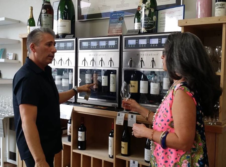Al demonstrates to Candy how to use the Napa wine station card which is really cool. You load on the amount of your choice. Then use as a credit card to taste samples, half or full glasses of great wine. Love!