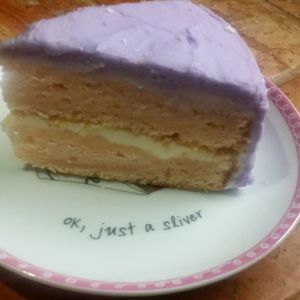 Pretty in Pink, Almond Vanilla Cake with Almond Vanilla Buttercream Frosting. A lavender twist. This was half a slice.