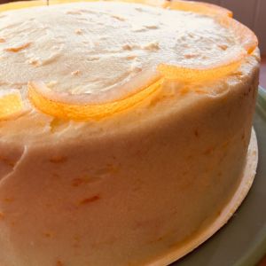 Zesty Orange Cake baked with fresh orange juice & orange zest then finished with Orange Cream Cheese Frosting.
