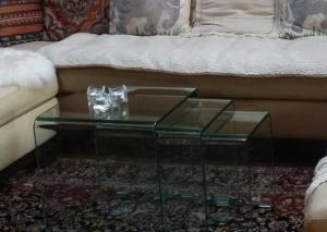 Originally there were 3 tempered glass tables which fit into one another. For time being I’m using the smallest one for folded towels in my bathroom.