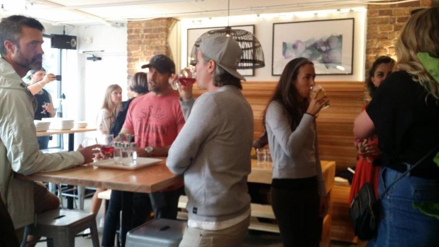 I went to their soft opening last Friday with my friend Tamara and we were both pleasantly surprised to see their extended selection. In fact I wasn’t sure which cider to sample first so I decided to go with a flight of four different types from their extensive tasting menu. Blackberry Hibiscus, Rosé , Passion Fruit and Oak Aged. All made in house; all excellent. Tamara sipped on their local apricot cider.