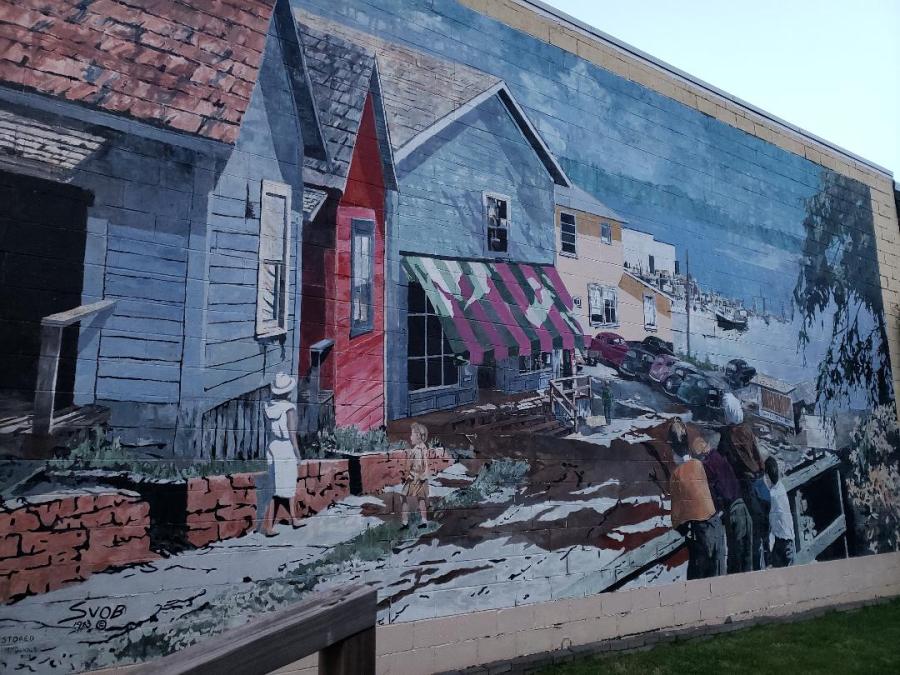 You can follow the yellow footsteps (like the yellow brick road) on the sidewalks to locate all the murals. Although we did it by chance and decided to spend the night in a hotel there so we could enjoy the town the next day.