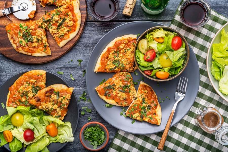 Sun-Dried Tomato & Ricotta Grilled Flatbreads with Fresh Herbs & Balsamic-Dressed Salad – Good Food Meal Delivery Kit.