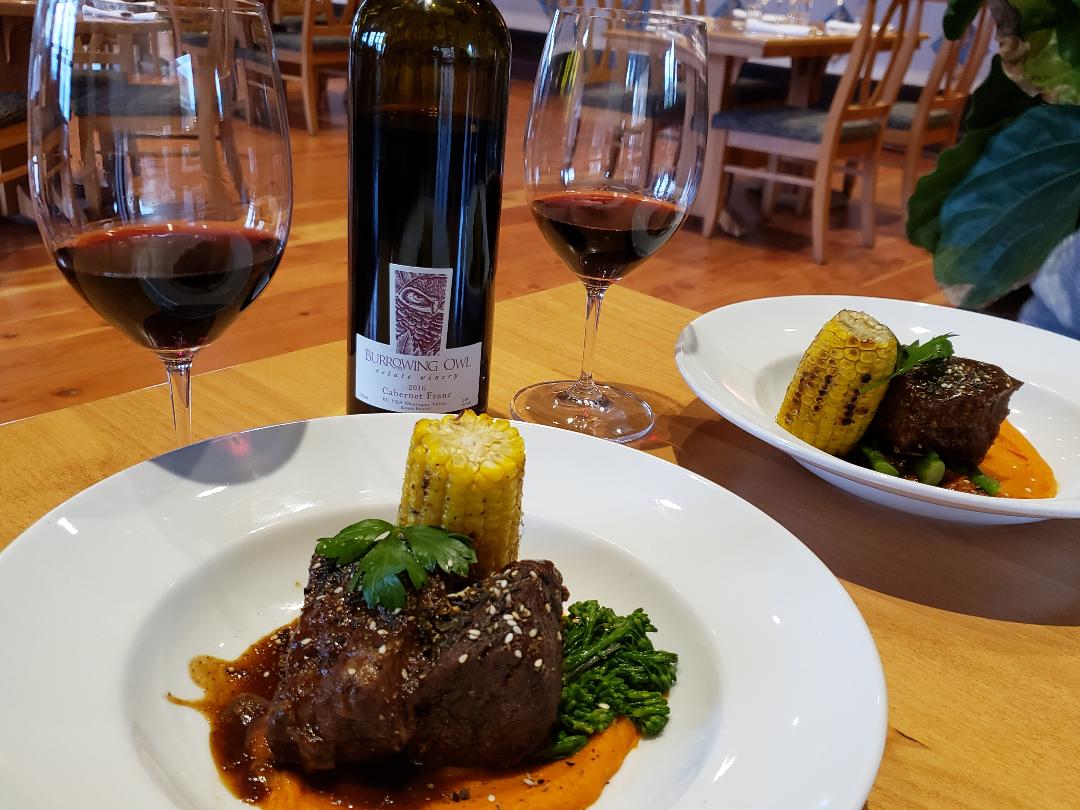 The Sonora Room Restaurant at Burrowing Owl Winery is where Margeaux and I had dinner on the first of our two night stay in Oliver, B.C. That was after wine sampling next door at the winery, and before finishing off our special bottle from the restaurant’s wine library. The library holds exclusive wines with a list changed regularly that are no longer publicly available for sale. And of course, they go along to compliment the menu. They have a very talented culinary team.
